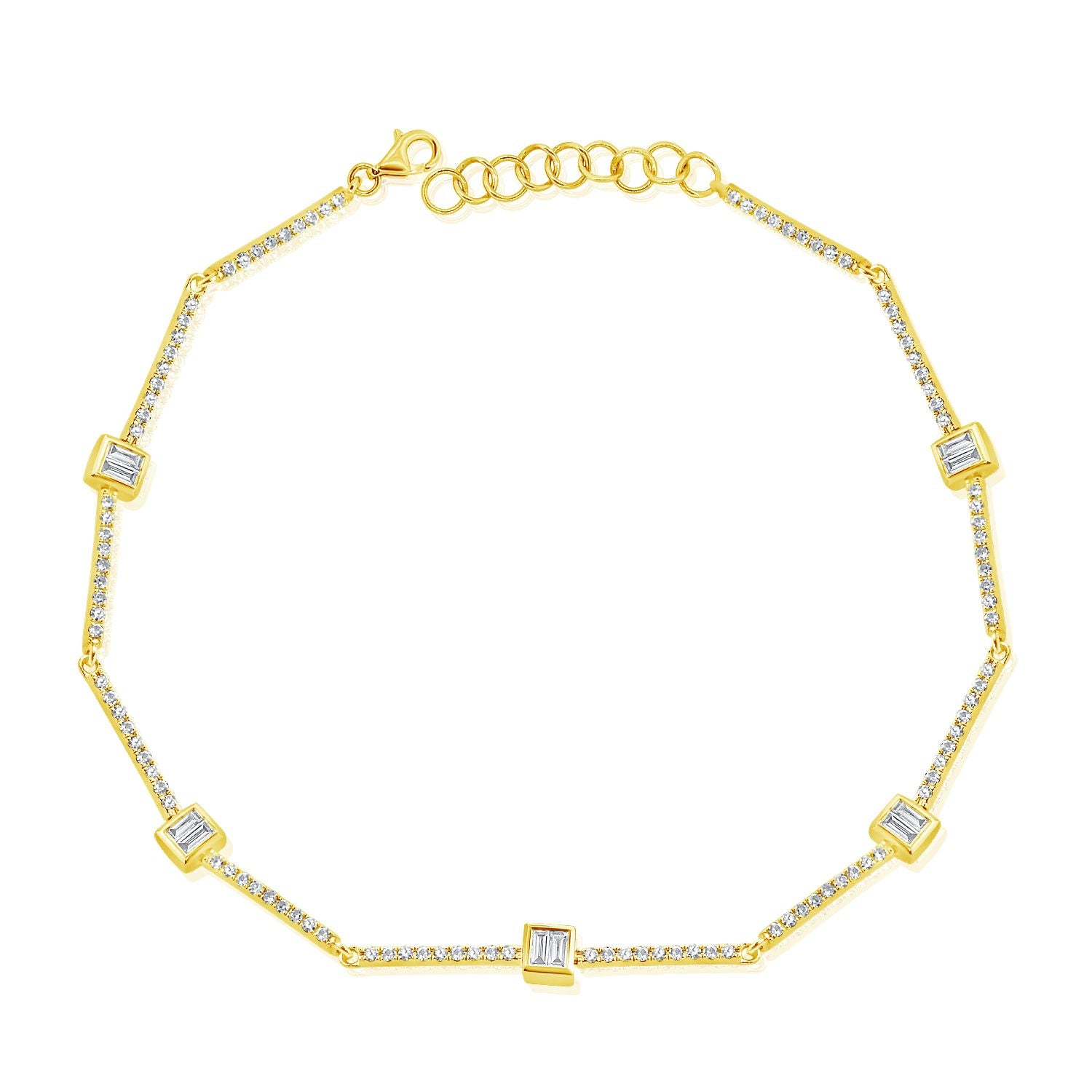 14k 0.25 ct Diamond By The Yard Anklet, six Stations, Available in White and Yellow Gold