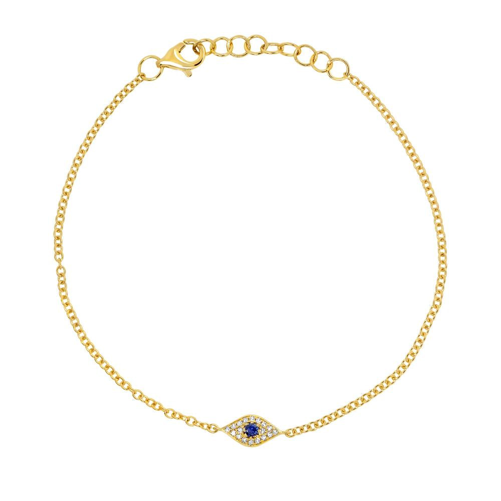 14K Gold 0.06Ct Sapphire, 0.04Ct Diamond Eye Bracelet, Available in White, Rose and Yellow Gold
