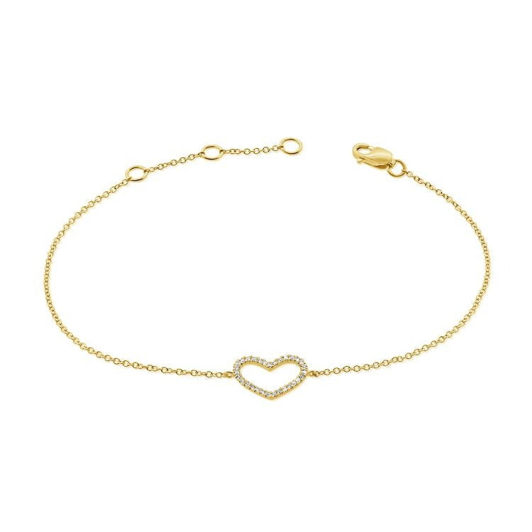 14k Gold 0.09Ct Diamond Open Heart Bracelet with 31 Diamonds, available in White and Yellow Gold