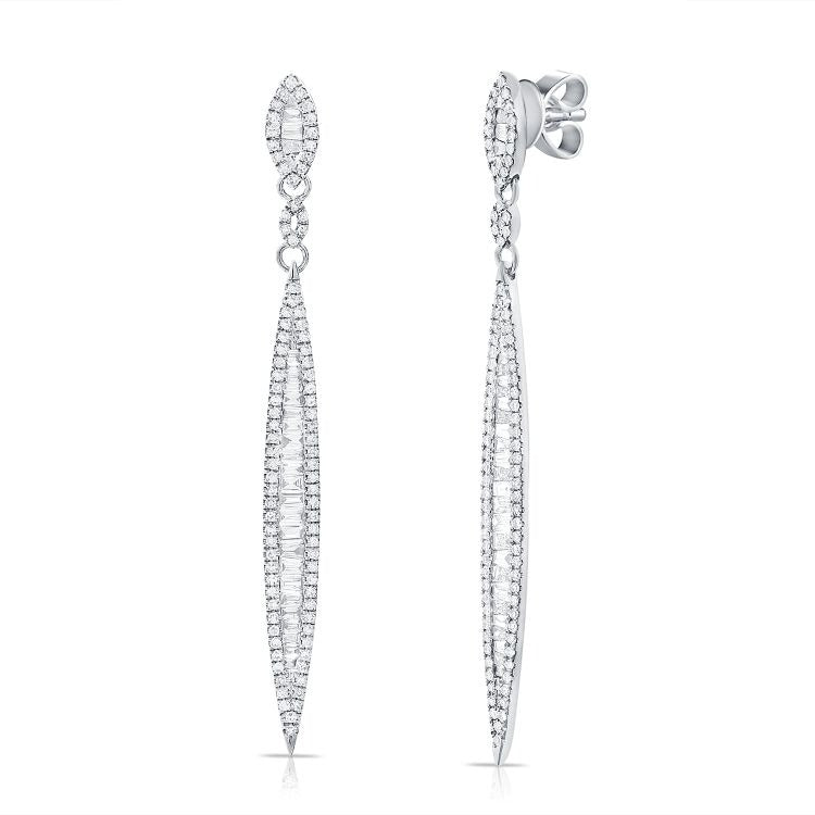 14k Gold 0.70Ct (61) Baguette diamond, 0.60Ct (180) Round Diamond Earring, available in White, Rose and Yellow Gold