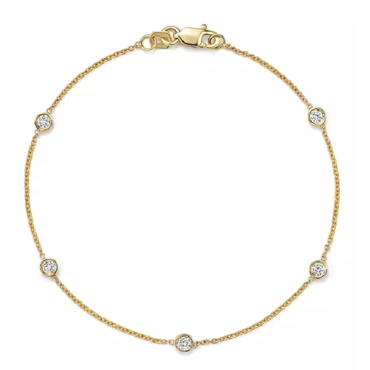 14k Gold 0.75Ct Diamond Bracelet with 5 diamonds, available in White and Yellow Gold