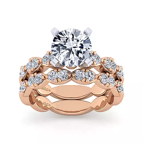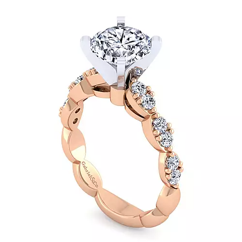 14k Rose Gold 0.45Ct Diamond Engagement Ring Mounting with Cubic Zirconia Center