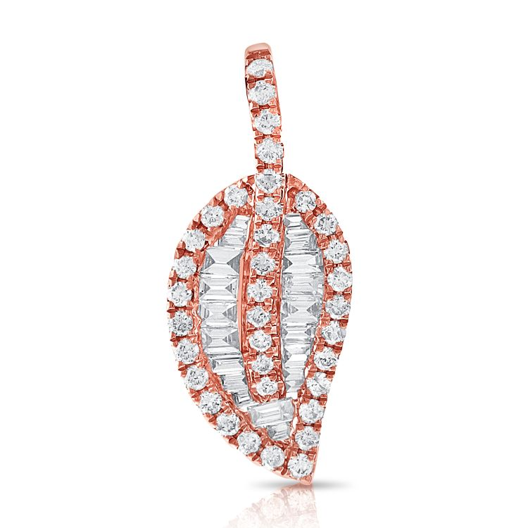 14k Rose Gold 0.55Ct Diamond Leaf Pendant