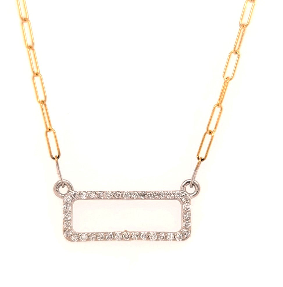 14k Two Tone Gold 0.15Ct Diamond Rectangle Necklace with 30 Diamonds