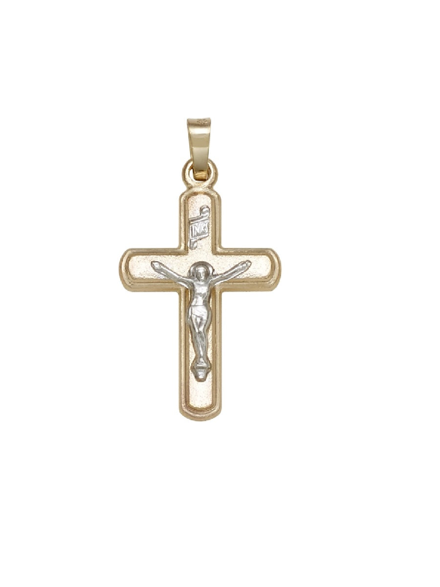 14k Two Tone Gold 5/8x7/8 inch Crucifix Cross