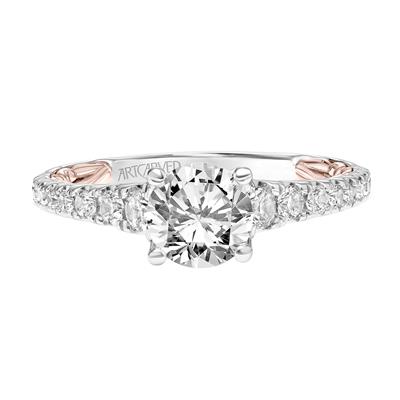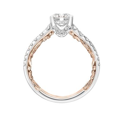 14K White and Yellow Gold Cubic Zirconia Center, 0.45Ct Diamond Semi Mount