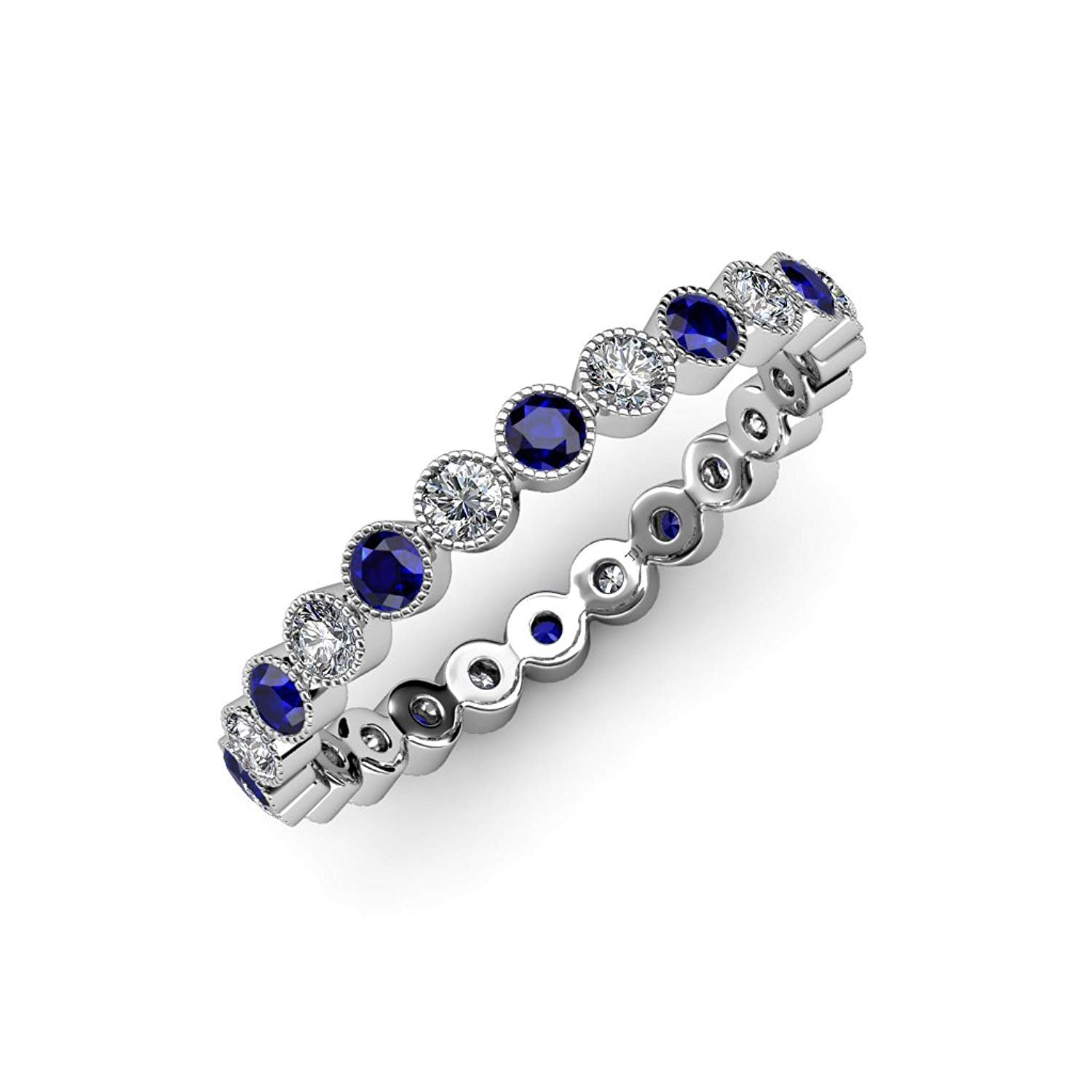 14k White Gold 0.19 Ct Sapphire, 0.15 Ct Diamond Eternity Band with Milgrain Border