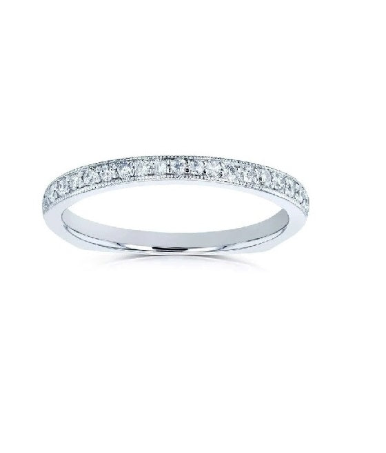 14k White Gold 0.21 Ct Diamond Band with Milgrain Border