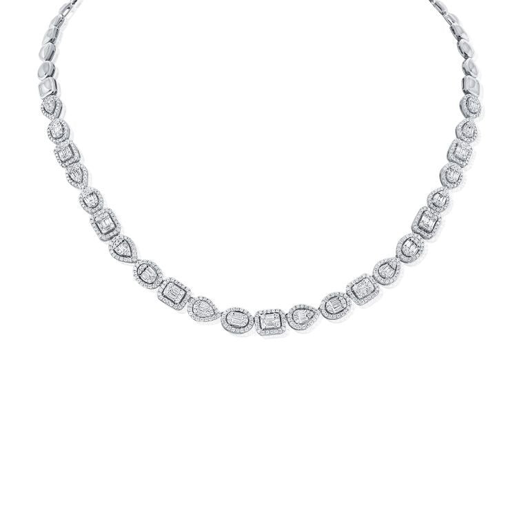 14k White Gold 0.38Ct (83) Baguette Diamond, 2.33Ct (552) Round Diamond Necklace, available in White, Rose and Yellow Gold