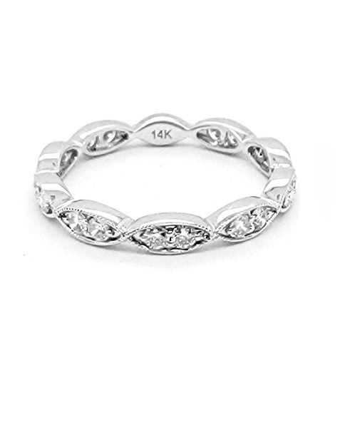 14k White Gold 0.44 Ct Diamond Milgrain Border Band