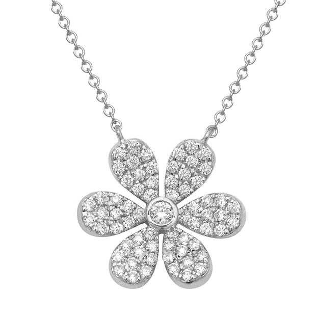 14K Gold 0.38Ct Diamond Flower Necklace, available in White and Yellow Gold