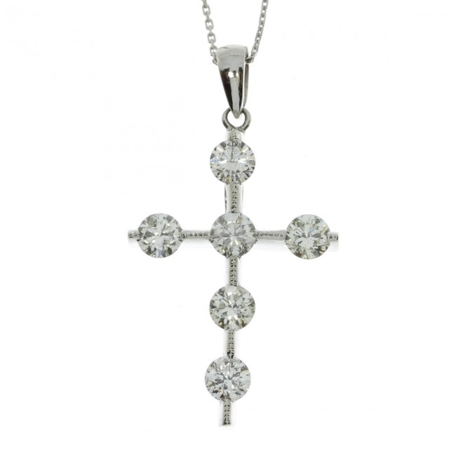 14k White Gold 0.64 Carat Diamond Cross Pendant