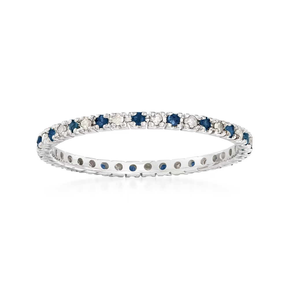 14k White Gold 0.64 Ct Sapphire, 0.46 Ct Diamond Eternity Band