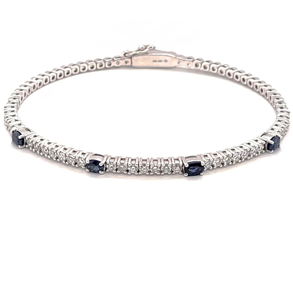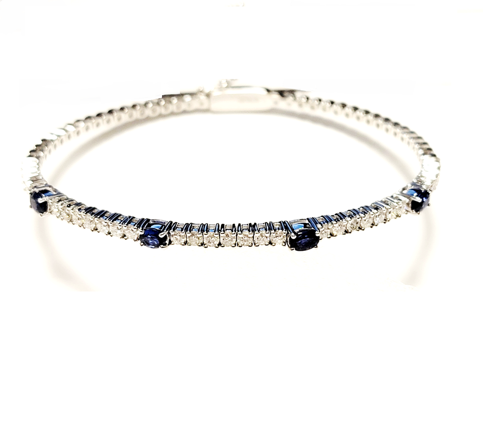 14k White Gold 0.87Ct Sapphire, 0.99Ct Diamond Flexible Bangle Bracelet