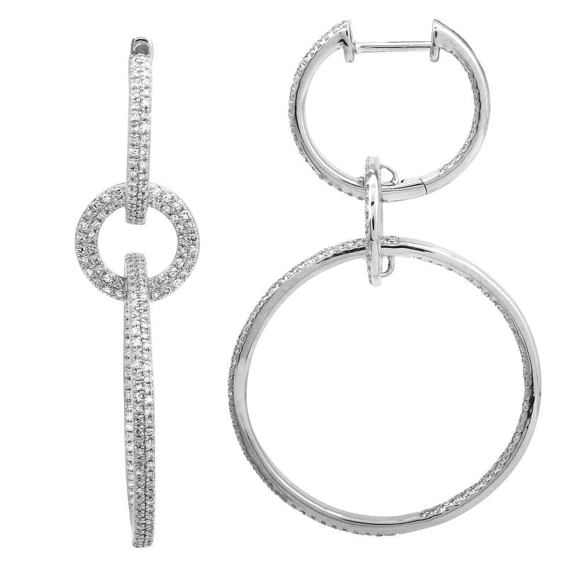 14k Gold 1.17 Carats Diamond drop circle earring, Available in White, Rose and Yellow Gold