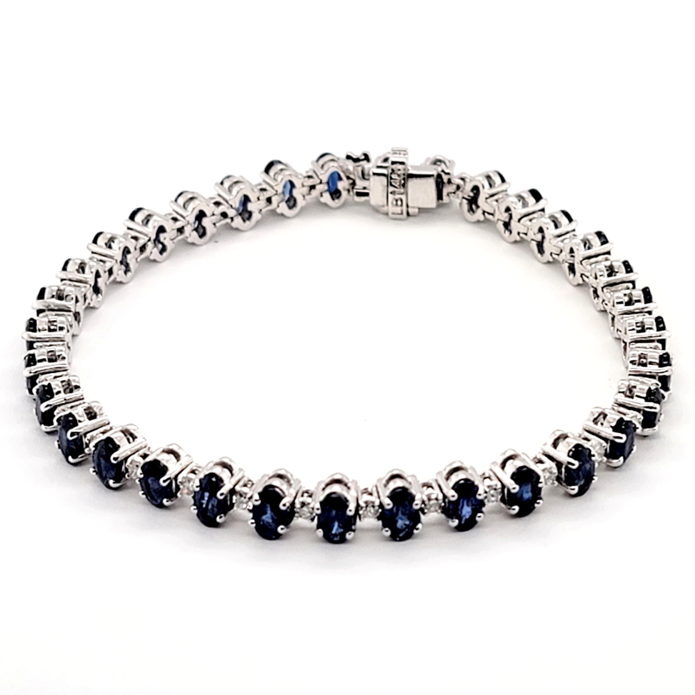 14k White Gold 10.90Ct Sapphire, 0.92Ct Diamond Bracelet