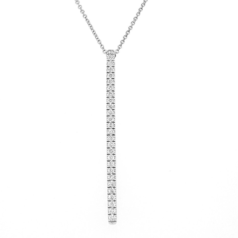 14k White Gold 2 Inch Vertical Bar Necklace, Total weight 0.58Ct with 27 diamonds