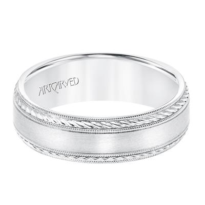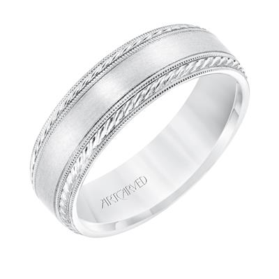 14K White Gold 6.5MM Satin Finish, Rope and Milgrain Accent, size 10.0