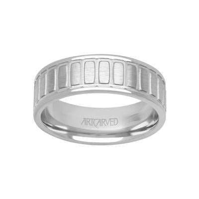 14k White Gold Band with Geometric Carved Center 7mm, Size 10.0