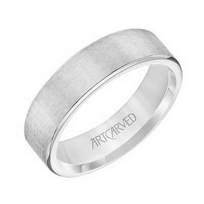 14k White Gold Flat Edge Wedding Band, Size 10.0