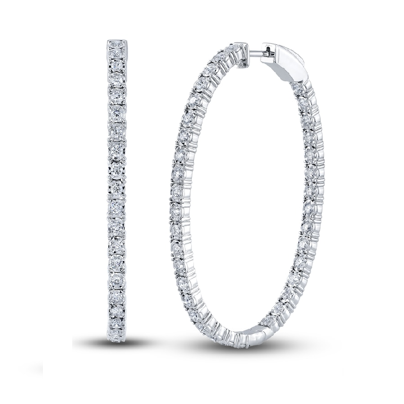 14k White Gold Inside/Out 1.07Ct Diamond Hoop Earring with 96 Diamonds