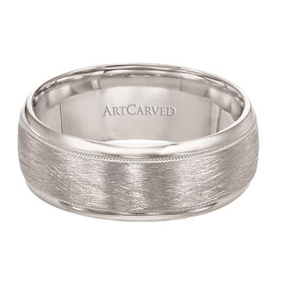 14k White Gold Wire Finish with Milgrain and polished edge, size 10