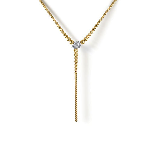 14K White & Yellow Gold Bujukan Beads and 0.26Ct Diamond Y Necklace