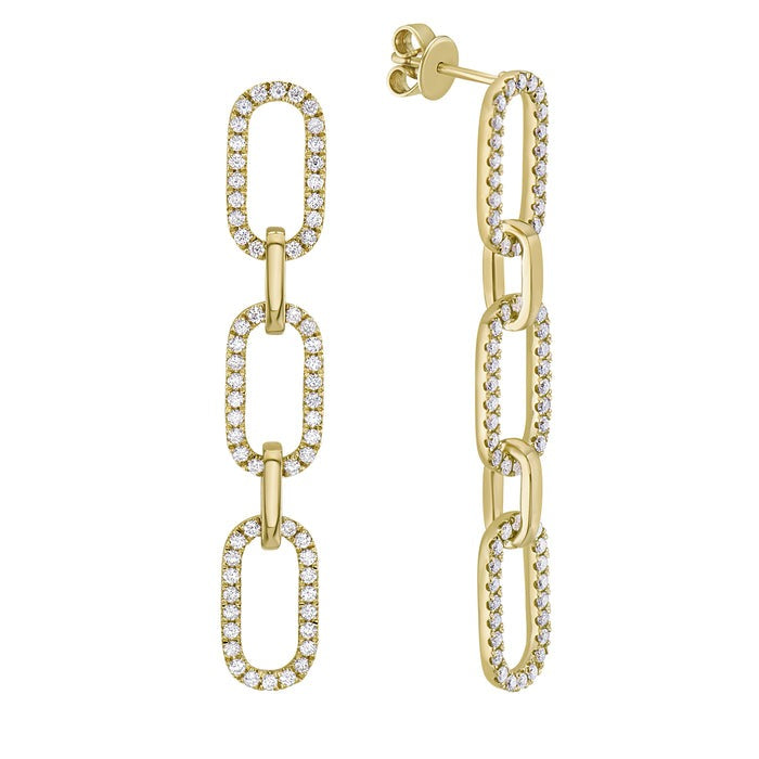 14k Yellow Gold 1.00Ct Diamond Triple drop Earring with 132 Diamonds