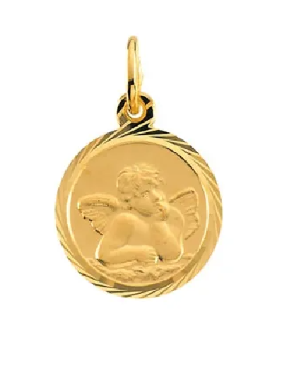 14k Yellow Gold 12mm Guardian Angel Medal