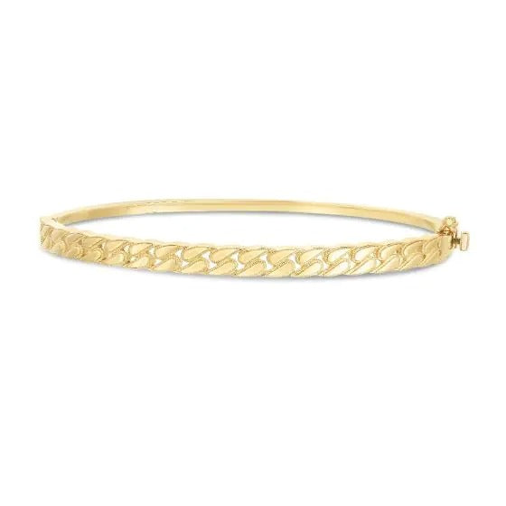 14K Yellow Gold Polished Cuban Chain 7" Bangle with Box Clasp