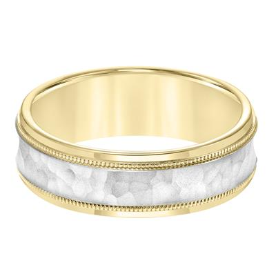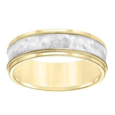 14k Yellow inside with White Hammered finish Middle Band, size 10