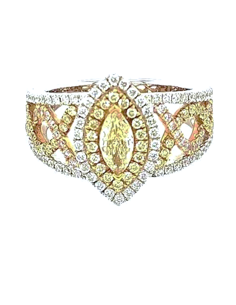 18K Tri-Color, 0.30 Ct Marquise, 0.28 Yellow, 0.16 Pink, 0.38 White Diamond Ring