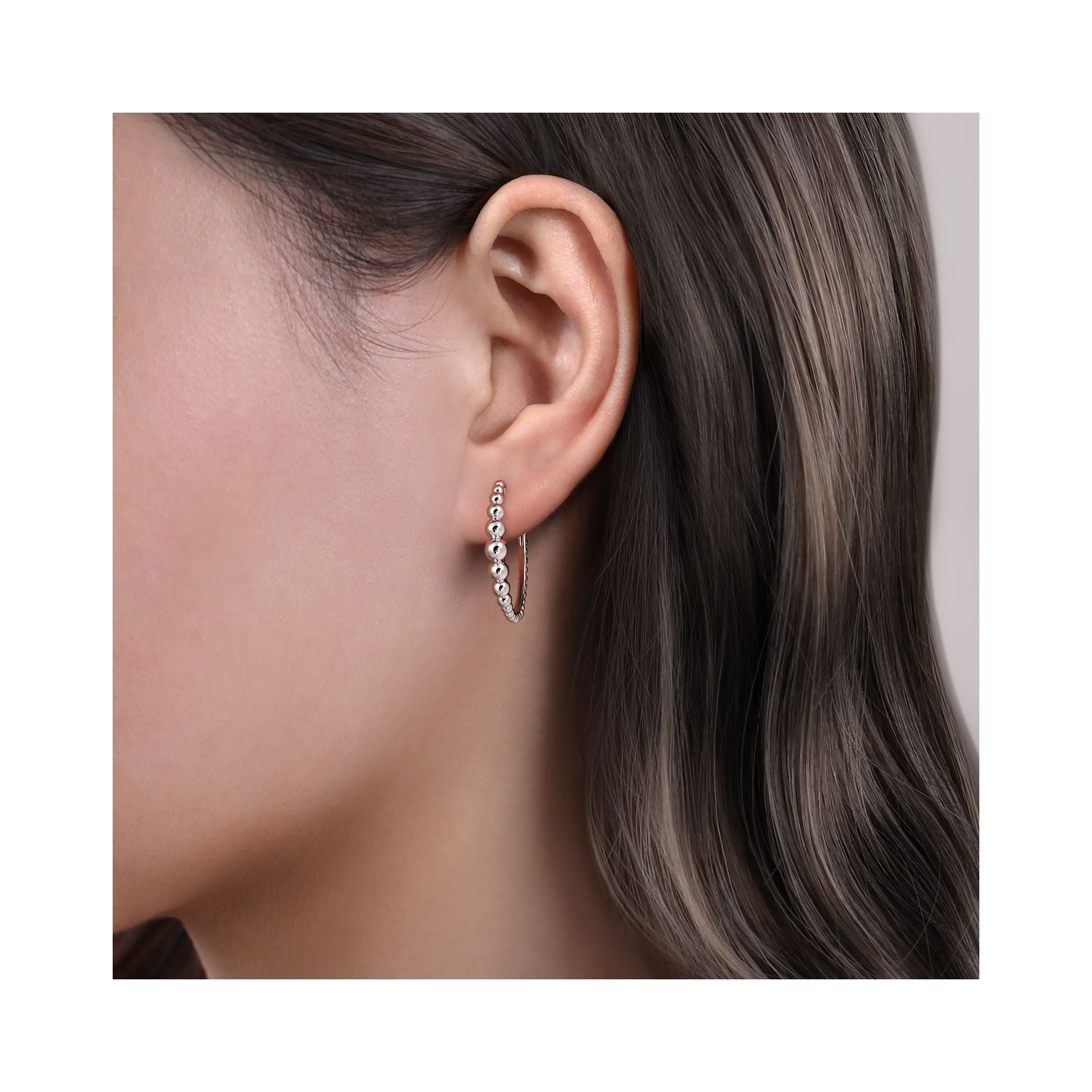 Gabriel Sterling Silver 25MM Beaded Classic Hoop Earrings