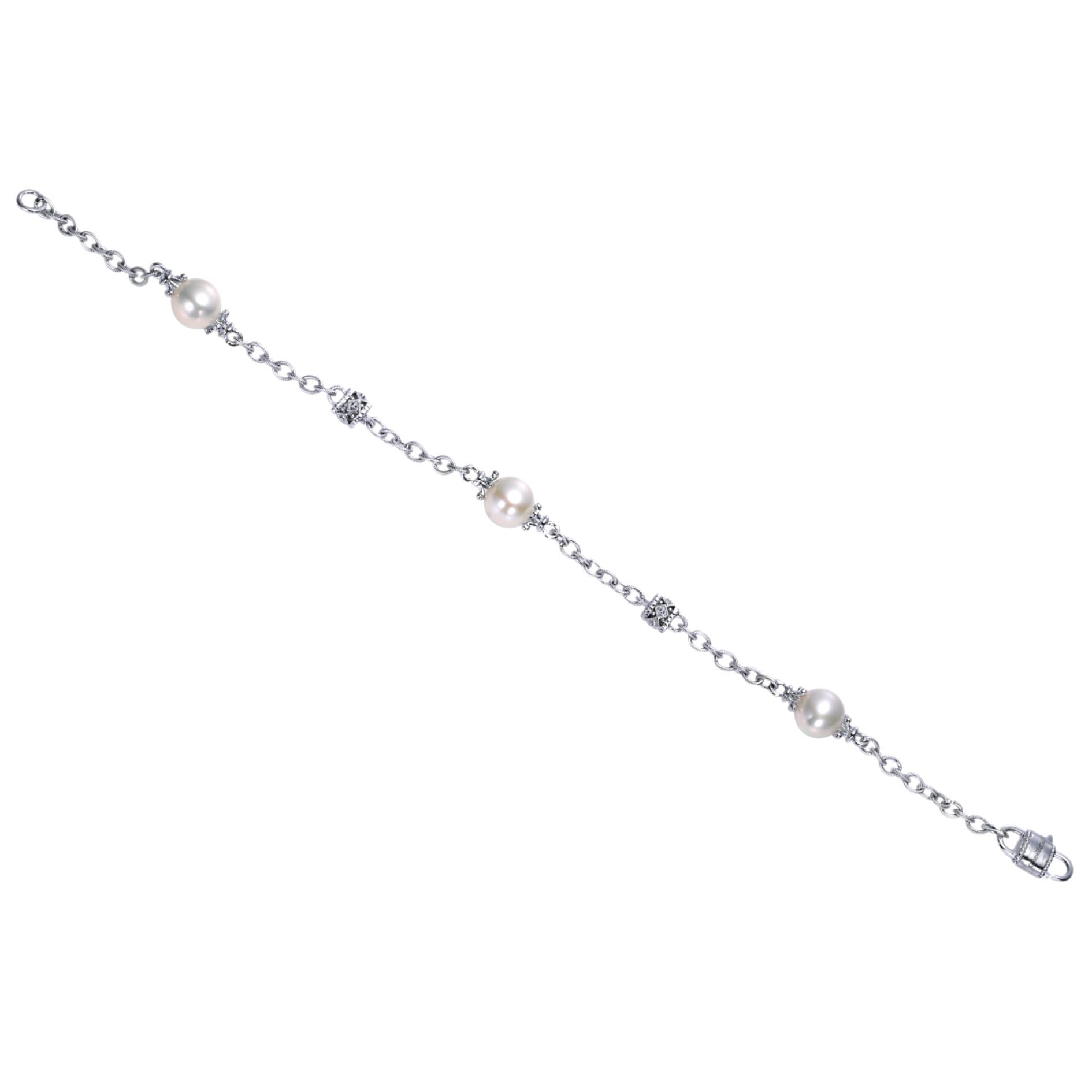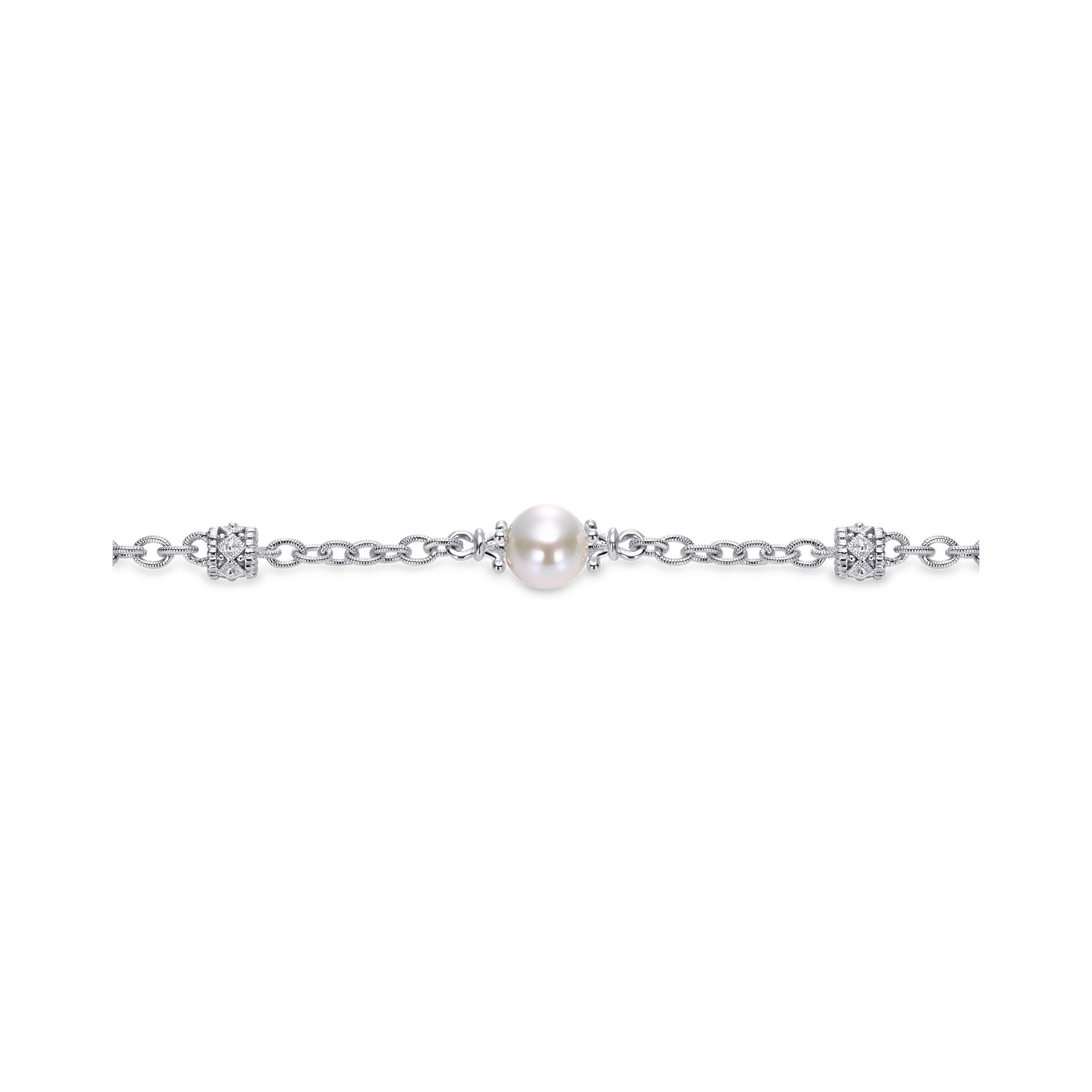 Gabriel Sterling Silver Filigree and Pearl Station Bracelet