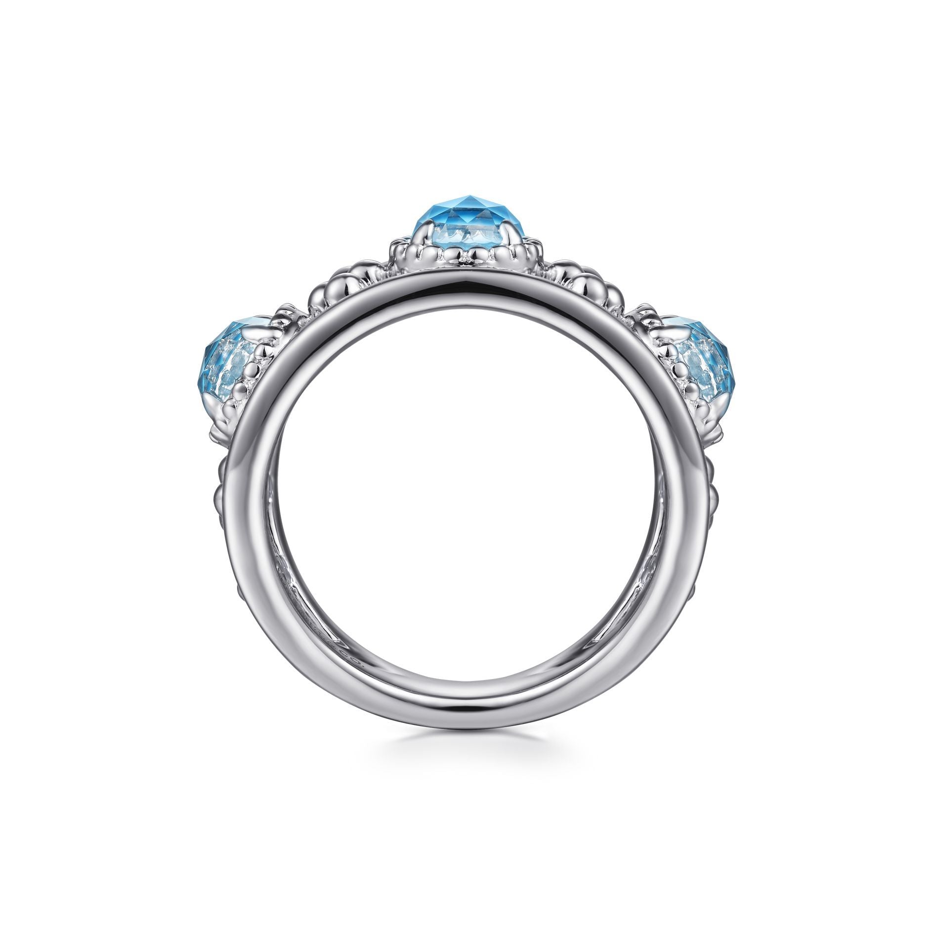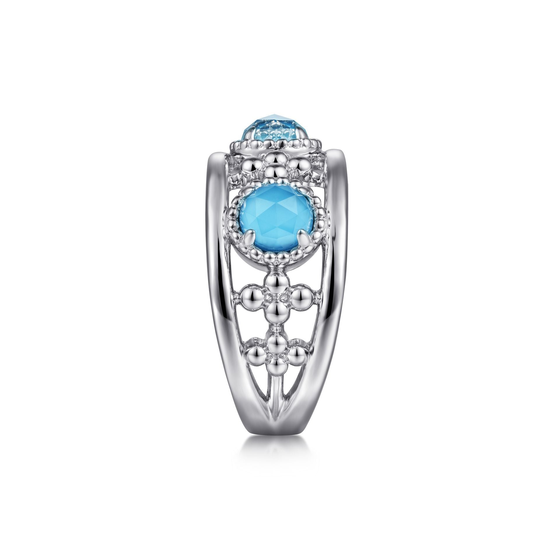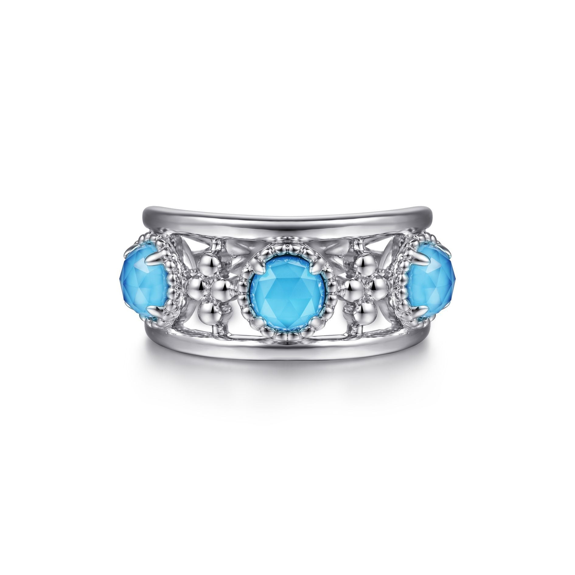 Gabriel Sterling Silver Rock Crystal and Turquoise Station Ring