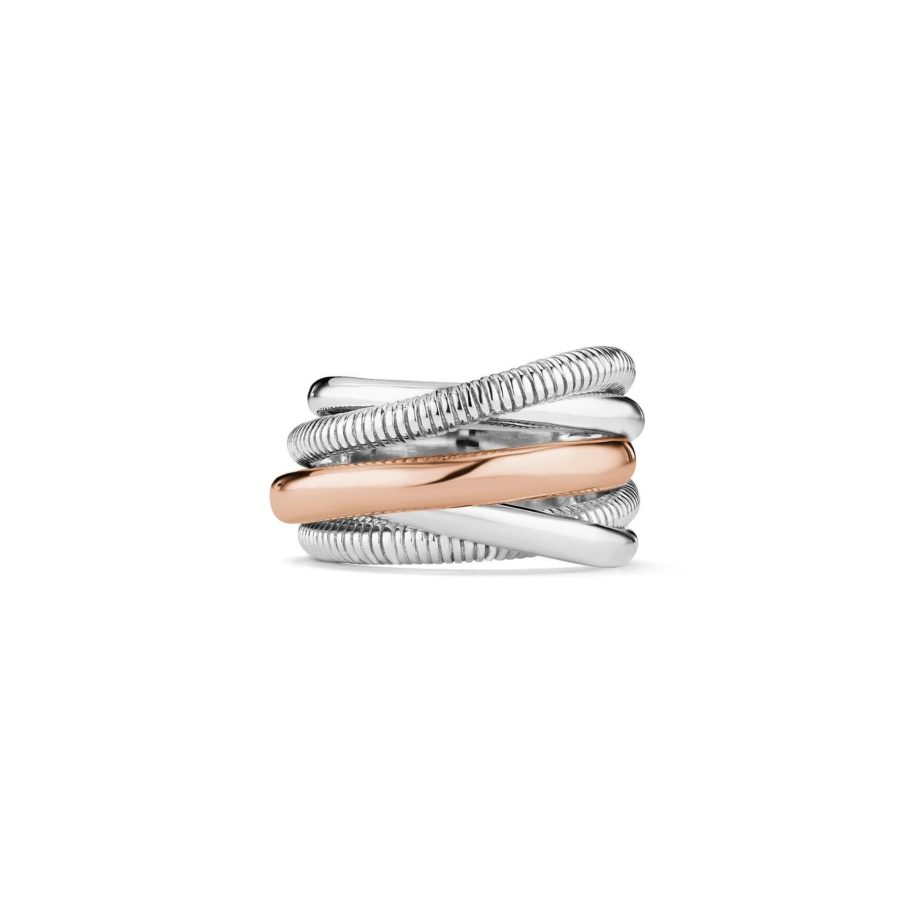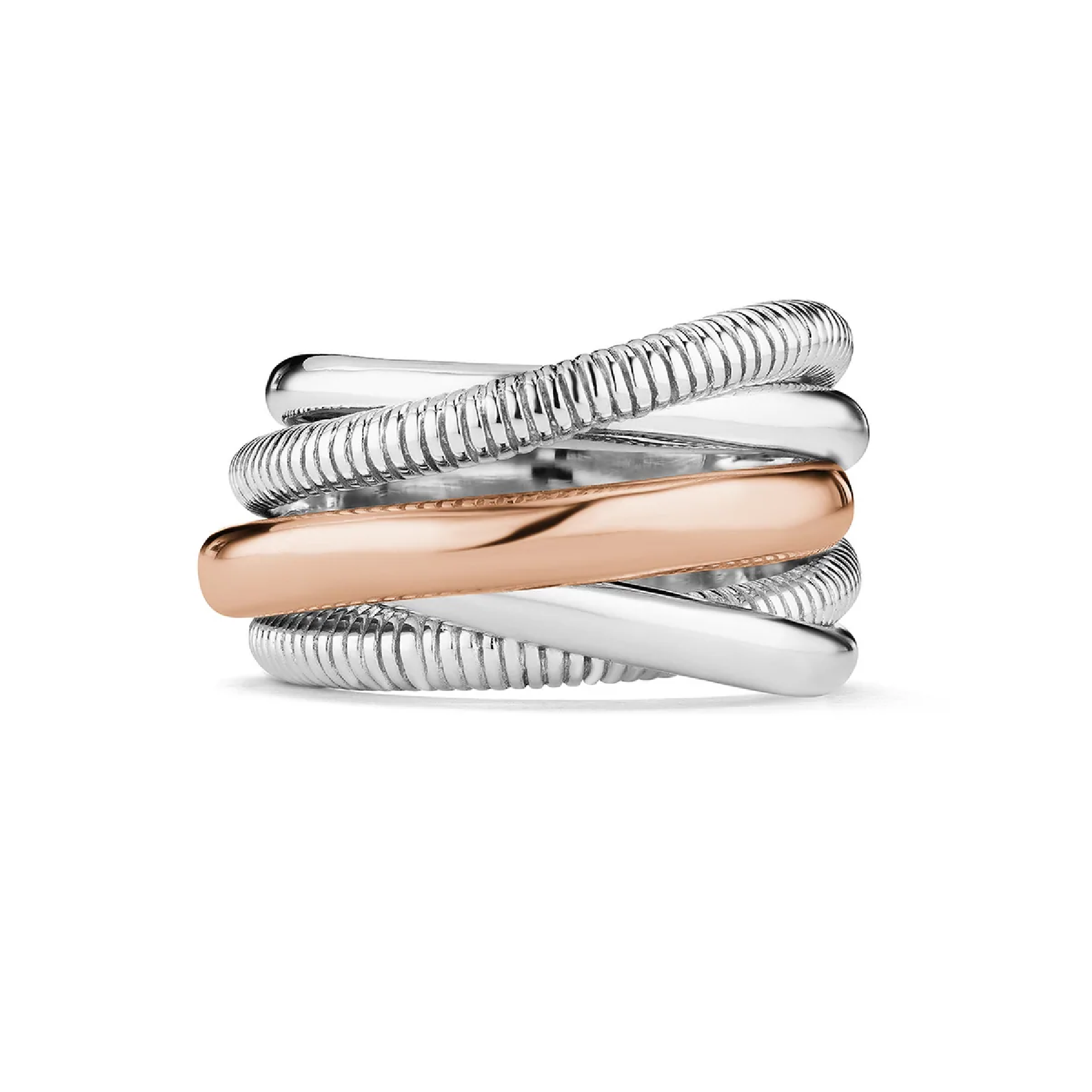 Judith Ripka Sterling Silver and 18K Rose Gold, 5 Band Ring, Size 7.0