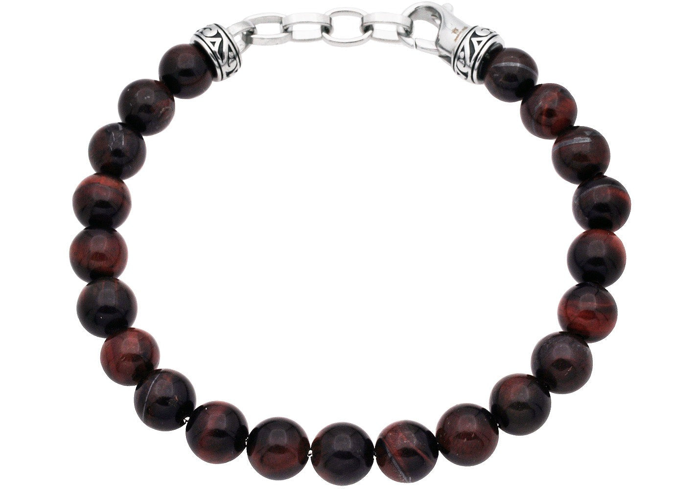 Men's Genuine 8mm Red Tiger Eye Bead Stainless Steel Bracelet