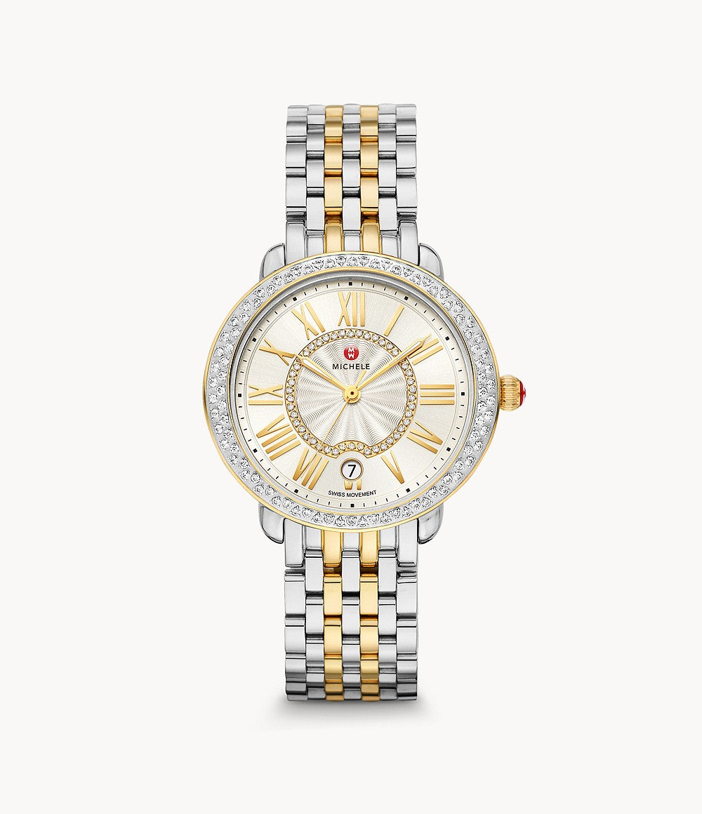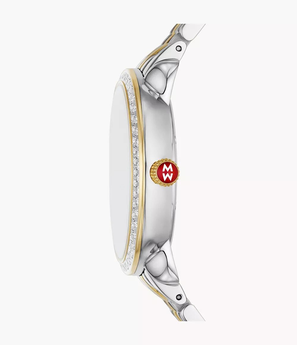 Michele Serein Mid Size Diamond Two Tone, Silver White Sunray Dial with Diamonds
