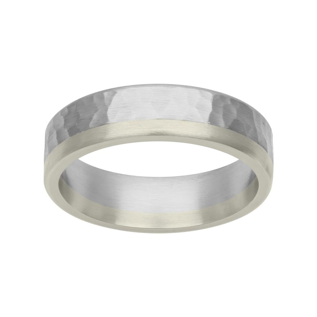 Platinum & 18K Gold Hammer Finish Fusion Band 6mm, Size 10.0