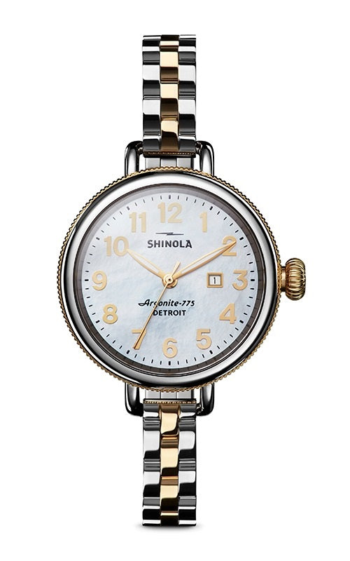 Shinola Birdy 34MM Polished Stainless Steel, White MOP Dial, Two Tone Bracelet