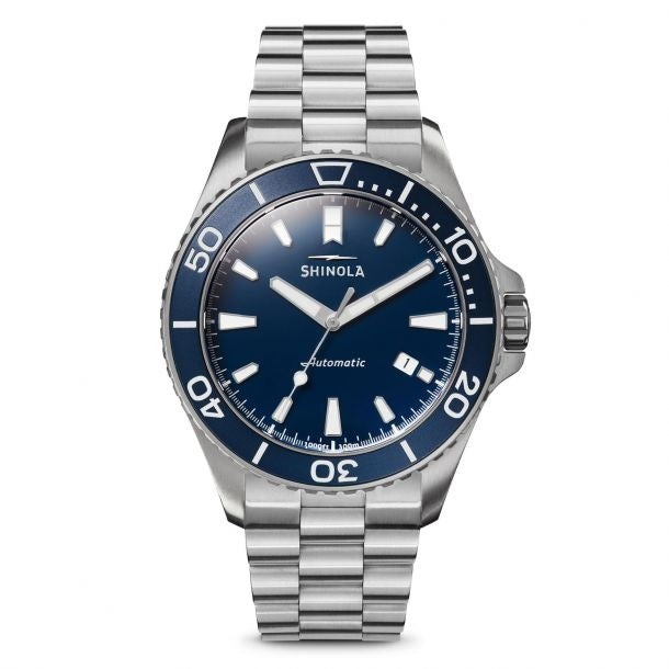 Shinola Lake Michigan Monster Automatic 43MM, Blue Dial, Polished and Brushed Steel Bracelet