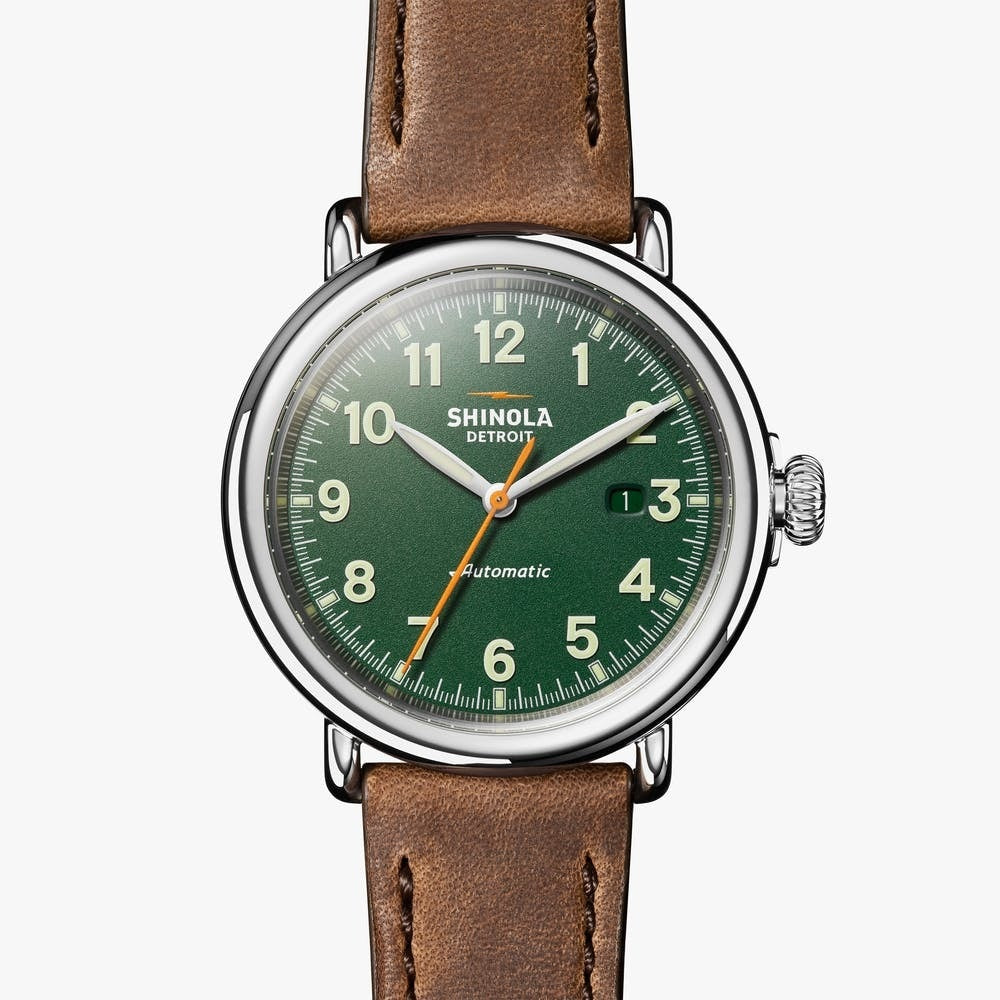 Shinola Runwell Automatic 45MM, Green Dial, British Tan Leather Strap