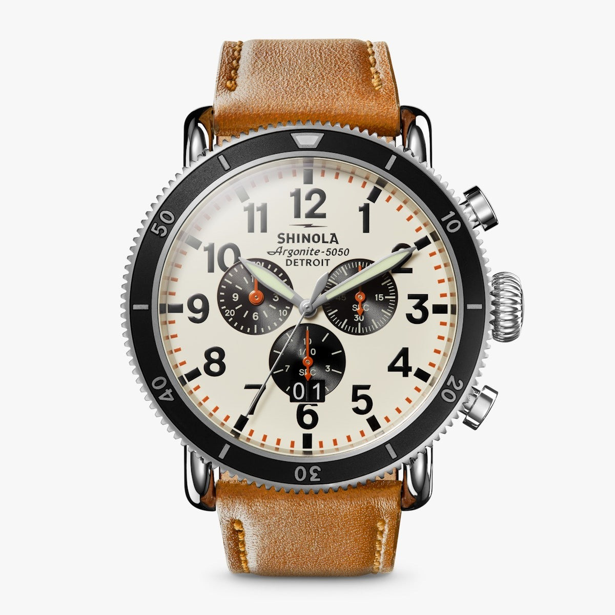 Shinola Runwell Sport 48mm, 3 Eye Chronograph, Bourbon leather strap