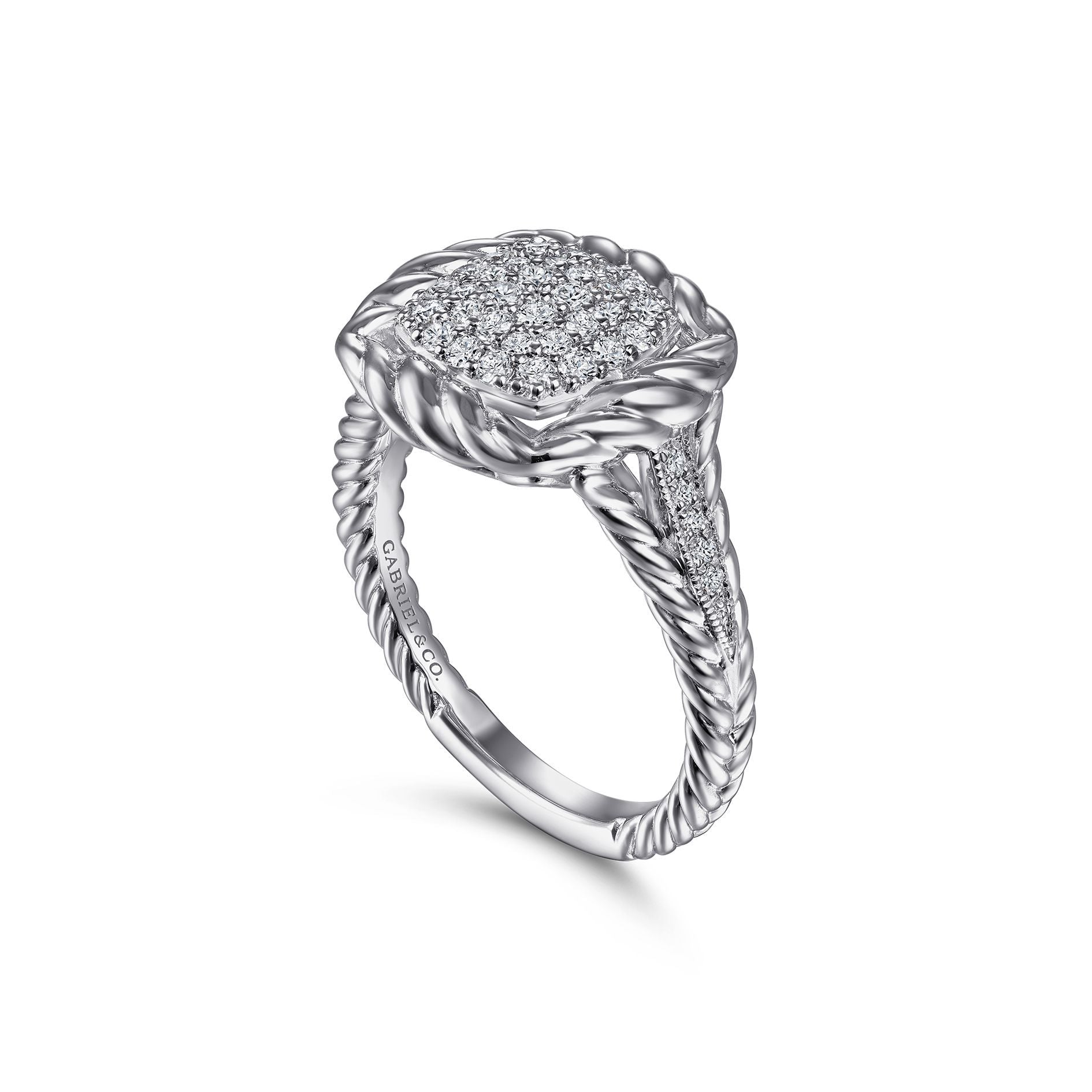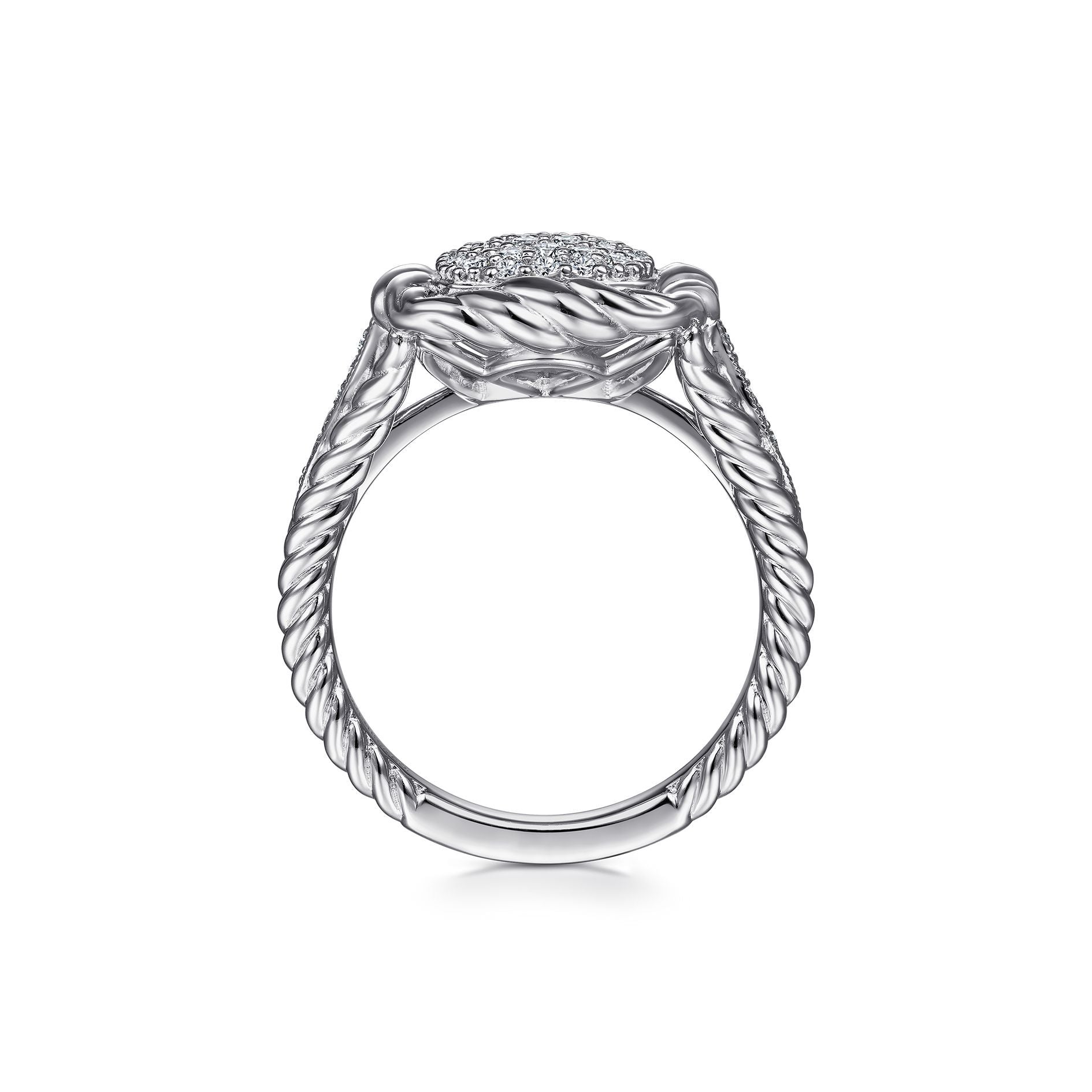 Sterling Silver 0.35 Ct Diamond Pavé Twisted Rope Framed Ring, Size 6.5