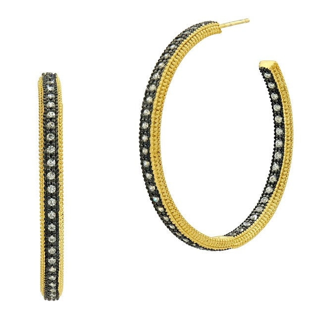 Sterling Silver 14k Gold Plated Cubic Zirconia Classic Hoop Earring