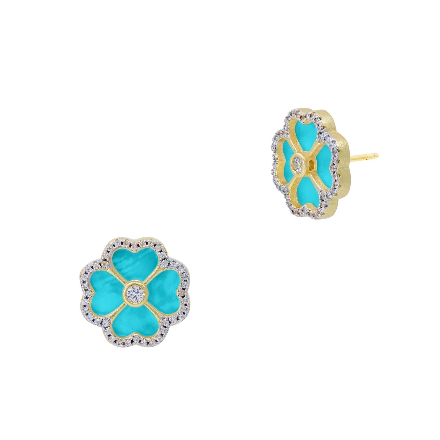 Sterling Silver 14k Gold Plated Downtown Flora Turquoise Stud Earring