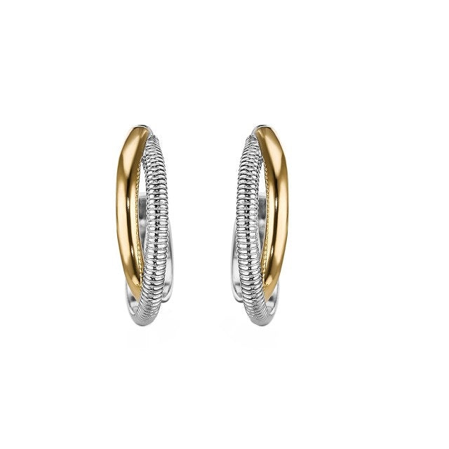 Judith Ripka Sterling Silver/18k Gold Eternity Hoop Earrings
