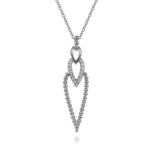 Sterling Silver Bujukan Beads and 0.60Ct White Sapphire Pendant Drop Necklace