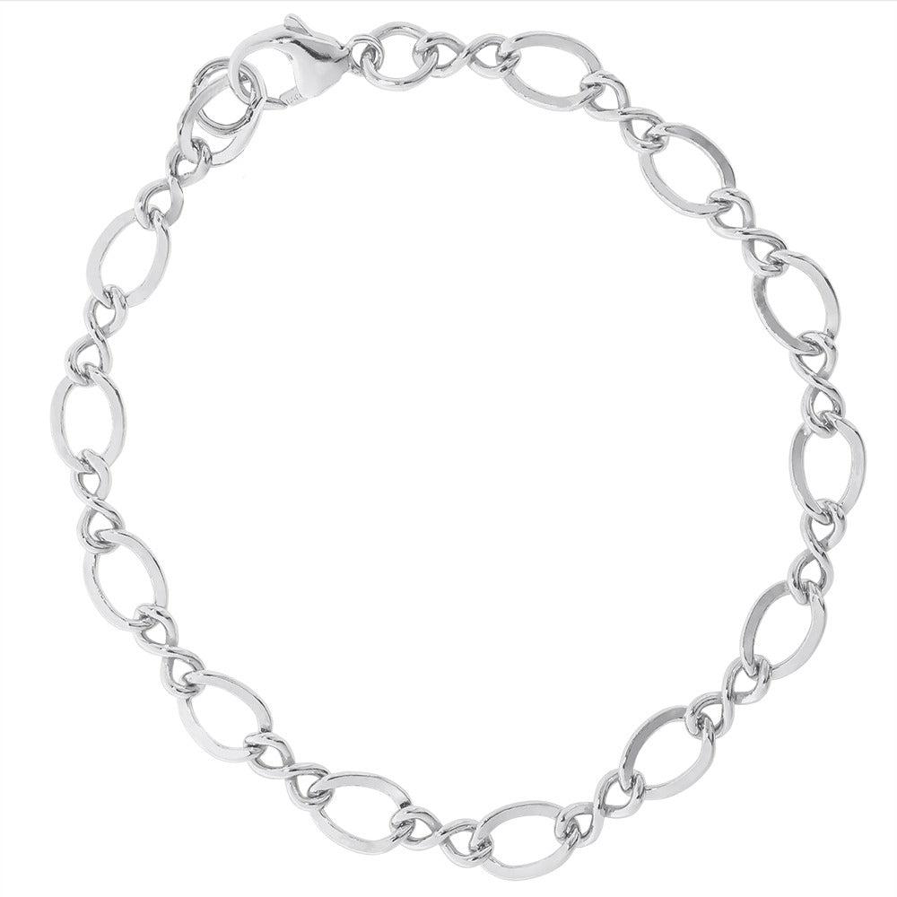 Sterling Silver Large Figure Eight Link Classic Bracelet 7 Inch Long